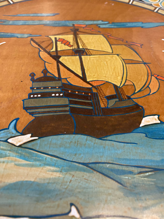 Arts & Crafts hand painted wooden plate - Galleon