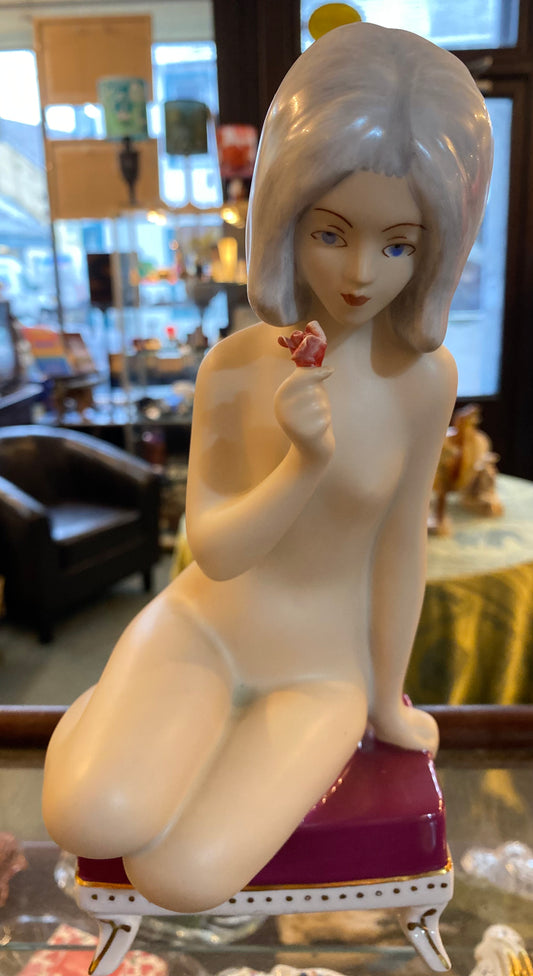 Royal Dux Bohemian Porcelain Seated Nude Woman Figurine