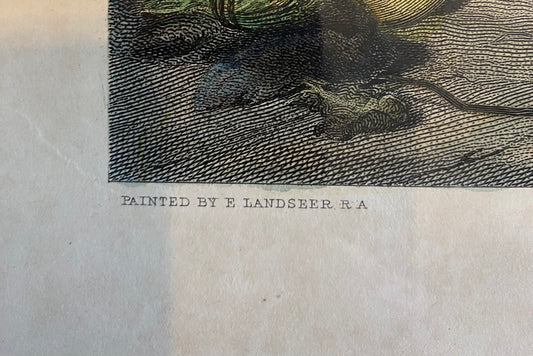 Interior of a Highlander’s cottage by Sir Edwin Landseer Victorian steel engraved print