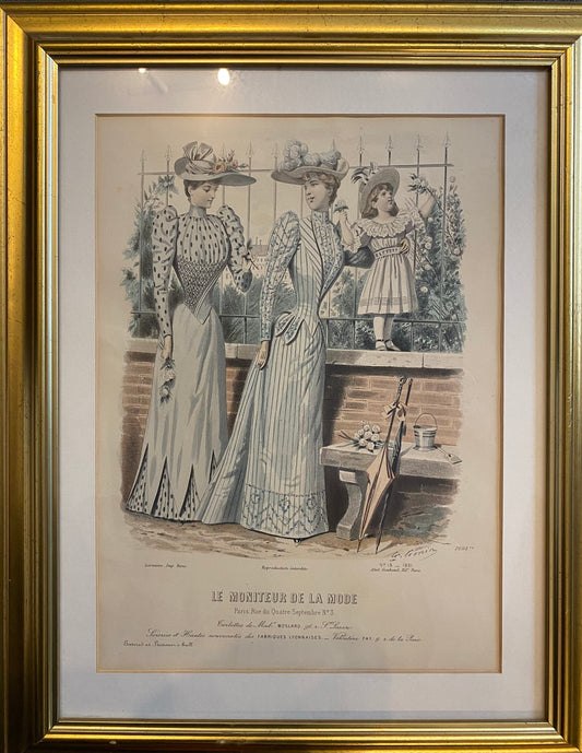 Victorian hand tinted lithograph from the French fashion publication Le Moniteur De La Mode
